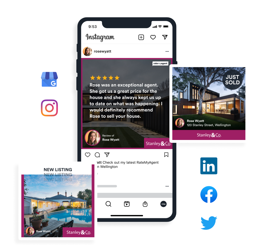 RateMyAgent is widely recognised throughout the industry and with buyers and sellers. Adding these reviews to your social media feed can only add to agents standing and hopefully encourage other sellers to reach out to you.
